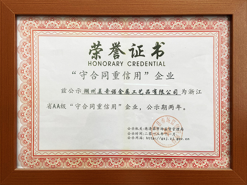 “守合同重信用”企業(yè)榮譽(yù)證書(shū)